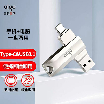 愛國者(aigo)128GB Type-C USB3.1 手機(jī)U盤 U351高速讀寫款 銀色 雙接口手機(jī)電腦用