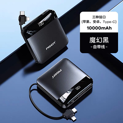 品勝10000毫安充電寶超薄小巧便攜快充自帶線迷你輕薄創(chuàng)意三合一移動(dòng)電源